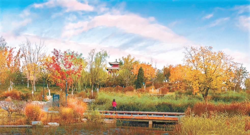 家住云景里小區(qū)的“90后”趙朋經(jīng)常和妻子來這里遛娃。“以前這里是幾處魚塘,還有餐館,后來池塘漸漸干涸了,開車經(jīng)過總是暴土揚塵的,更別提什么景色了。沒想到現(xiàn)在竟然變成了公園,還有那么多好看的彩葉,家門口就能賞秋景,大家都很高興?!?/p>