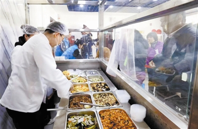 中午時(shí)分,這家老人家食堂里擠滿“聞訊嘗鮮”的居民,有的拿著托盤堂食,有的帶著飯盒外帶。“我叫它‘幸福食堂’,一進(jìn)來就是香噴噴的煙火氣。”古稀之年的社區(qū)居民劉衛(wèi)國滿意地說,“我一個(gè)人吃不多,以前做飯就是對付一口?,F(xiàn)在家門口就有食堂,菜品種類繁多,價(jià)格還實(shí)惠,解決了吃飯的大難題。”