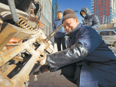 萬泉莊南社區(qū),修車師傅幫居民維修車輛,為大家提供暖心的便民服務。寇洵攝