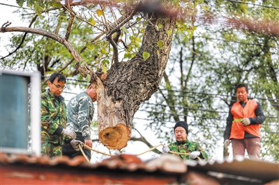 還需要準(zhǔn)備什么?需要將樹冠纏繞著的高壓線斷電,需要保證與永恒胡同共用線路的醫(yī)院等單位在斷電時(shí)安全過渡……