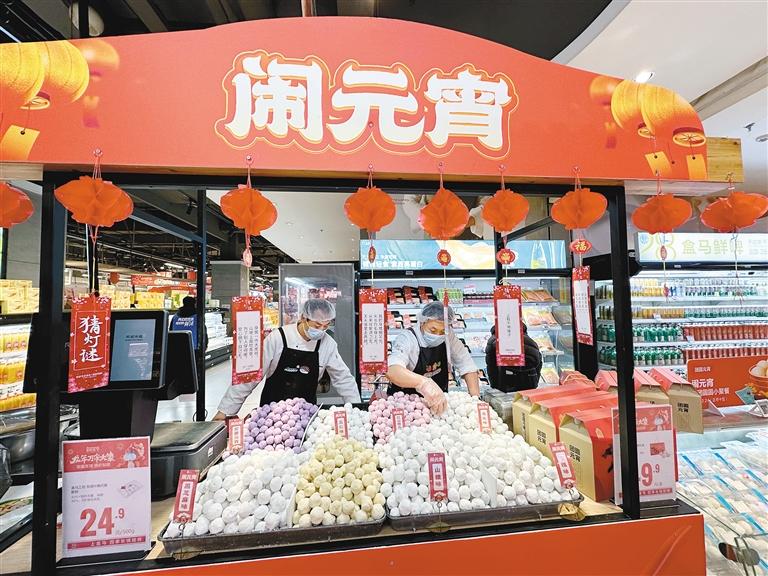 2月22日,西安市一家生鮮超市內(nèi)的元宵柜臺(tái)。首席記者 軒轅楊子 攝