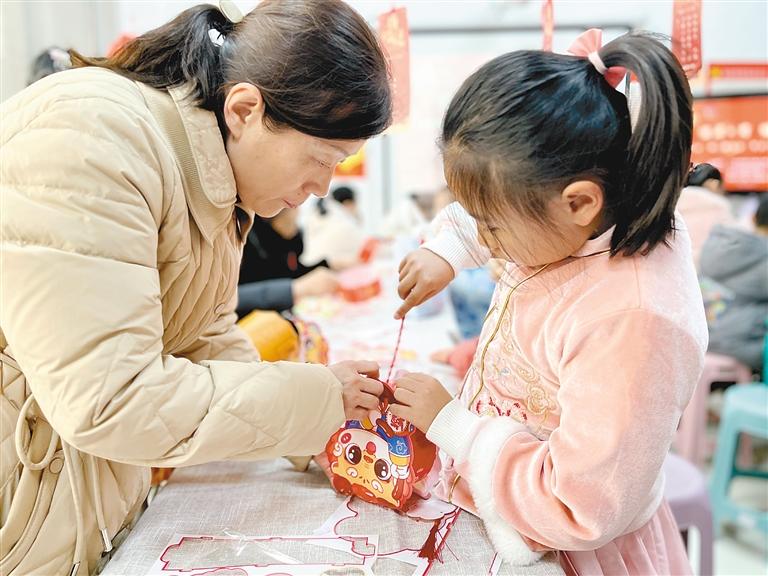小朋友在大人的幫助下認(rèn)真制作花燈 記者 王甜甜 攝