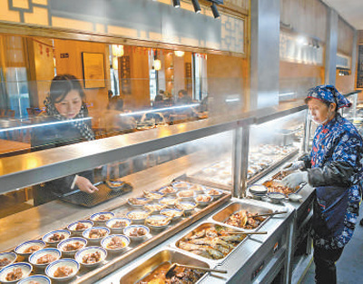 2月23日,安徽省銅陵市義安區(qū)鐘鳴鎮(zhèn)永泉農莊自助餐廳為顧客提供了小份菜。過仕寧 攝(人民視覺)
