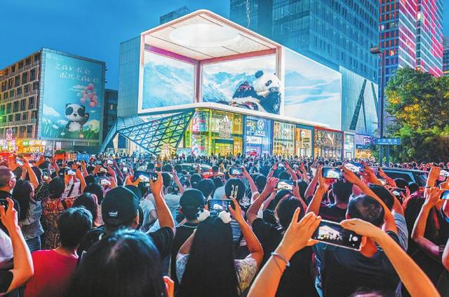 裸眼3D 成都太古里路口的裸眼3D大屏,吸引全國各地游客來此打卡。