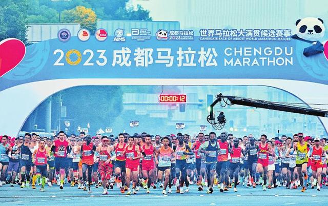 成馬開跑 2023年10月29日,2023成都馬拉松鳴槍起跑,來自全球的35000名跑者共享公園城市魅力。