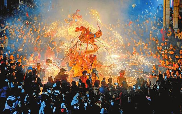 樂加火龍 綿陽三臺縣樂加火龍鬧元宵。燒火龍是當?shù)貍鹘y(tǒng)民俗,老百姓認為煙火燃得越旺,來年的日子就越紅火。