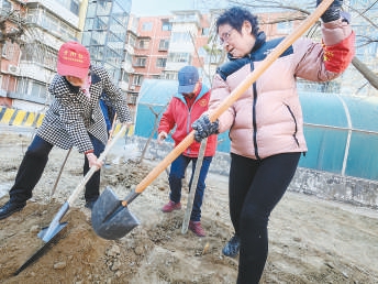 古城街道八千平社區(qū),居民和社區(qū)工作者進行義務植樹活動,營造一個宜居的綠色家園。記者 吳鏑 攝