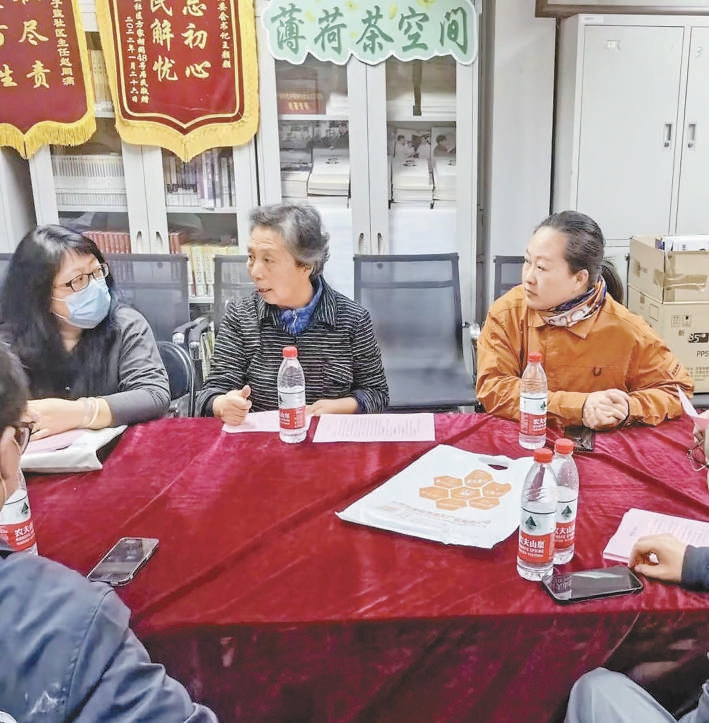 國(guó)子監(jiān)社區(qū)居民代表李秀芬(居右)正在居民議事會(huì)上發(fā)表建議。