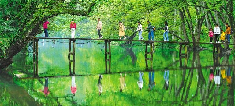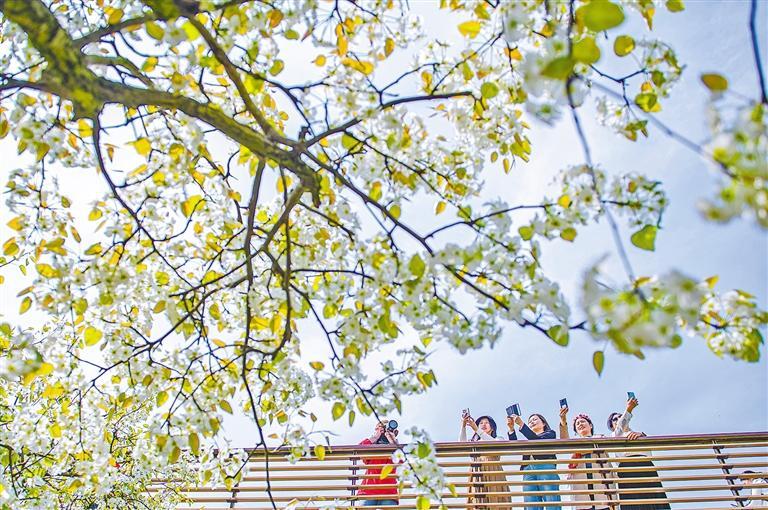 4月7日,安徽省黃山市徽州區(qū)西溪南濕地春光旖旎,游客紛至沓來,感受春的氣息。施亞磊 攝(中經視覺)