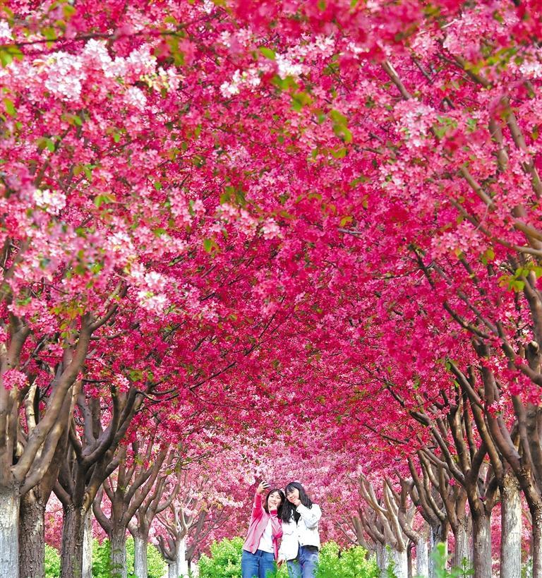 4月8日,游客在河北省邯鄲市峰峰礦區(qū)義井鎮(zhèn)海棠林里賞景。郝群英 攝(中經視覺)