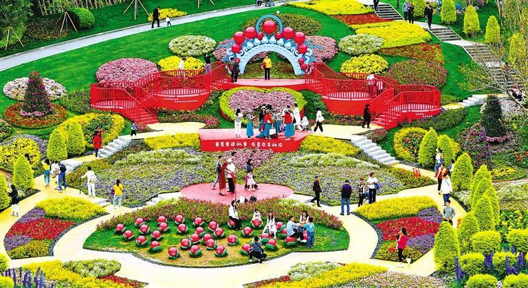 4月5日,重慶市巴南區(qū)巴濱花藝園春光明媚,百花盛開,游客前來踏青游玩。李攀 攝(中經視覺)