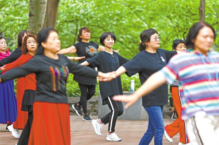西安長樂公園作為西安市民體育健身的重要場所之一,被譽為“城市森林公園”。圖為5月7日,市民在西安長樂公園跳廣場舞。 記者 肖陽熠 攝