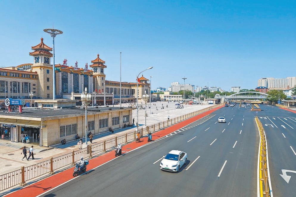 嶄新的瀝青路面,鮮艷的自行車“紅毯”,連續(xù)不斷線的步道……北京站前,經(jīng)過大修的道路平整干凈,進(jìn)一步提升了首都“迎賓門”的顏值。