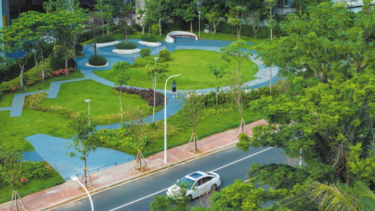 5月26日,俯瞰位于龍華區(qū)南沙路的“口袋公園”,入目一片綠意盎然。如今,“推窗見(jiàn)綠、出門入園”的生活愿景對(duì)于椰城市民愈發(fā)觸手可及。