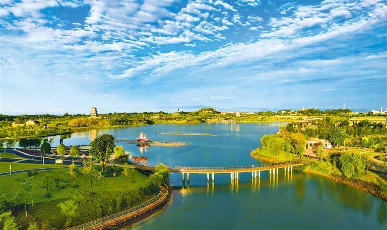 6月11日,重慶市墊江縣三合湖濕地公園。近年來,當(dāng)?shù)匾越ㄔO(shè)生態(tài)宜居城市為目標(biāo),建成2000余畝濕地公園,融入“運動、智慧、濱水、文化”等理念,形成城景相融的城市生態(tài)。龔長浩 攝(中經(jīng)視覺)