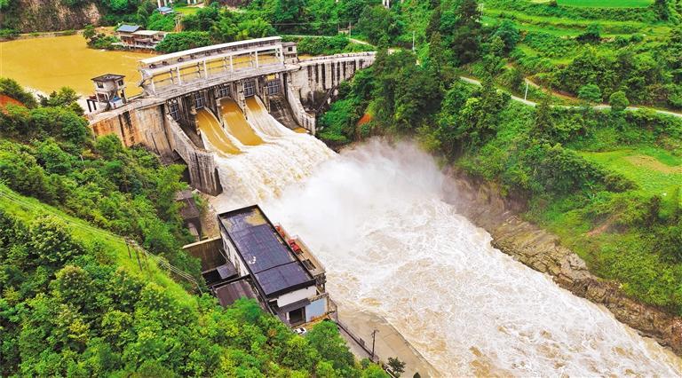 6月18日,位于貴州省錦屏縣境內(nèi)的八河水電站開(kāi)閘泄洪。楊曉海 攝(中經(jīng)視覺(jué))