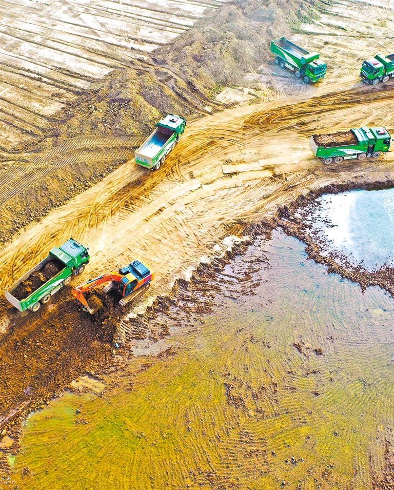 6月17日,施工人員在安徽省宿松縣華陽(yáng)河蓄滯洪區(qū)建設(shè)工程現(xiàn)場(chǎng)作業(yè)。李龍 攝(中經(jīng)視覺(jué))