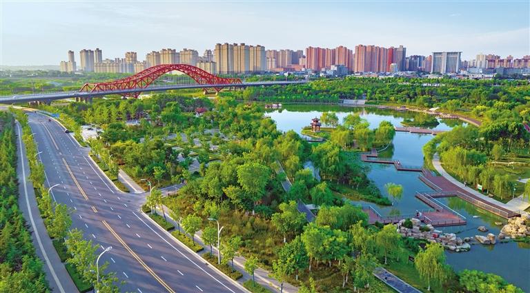 從“缺水少綠”到水暢岸綠,如今的富平,水抱城,城繞水,水城相依,美不勝收。(記者 陳宏江 梁少飛 耿楊洋)