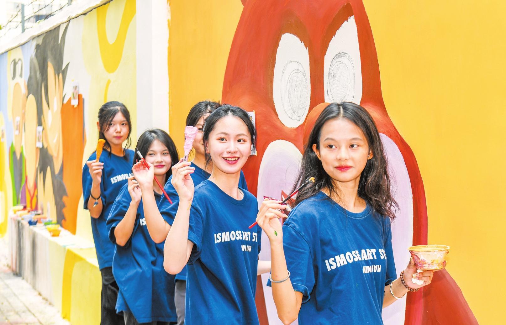 “作為一名海南人,能夠用畫筆為家鄉(xiāng)服務(wù),我覺得十分自豪?!编嵥佳攀菂⑴c此次彩繪的藝術(shù)愛好者之一,她表示,新潮有趣的墻繪能夠吸引更多人來打卡,在每一幅墻畫前感受不一樣的文化。