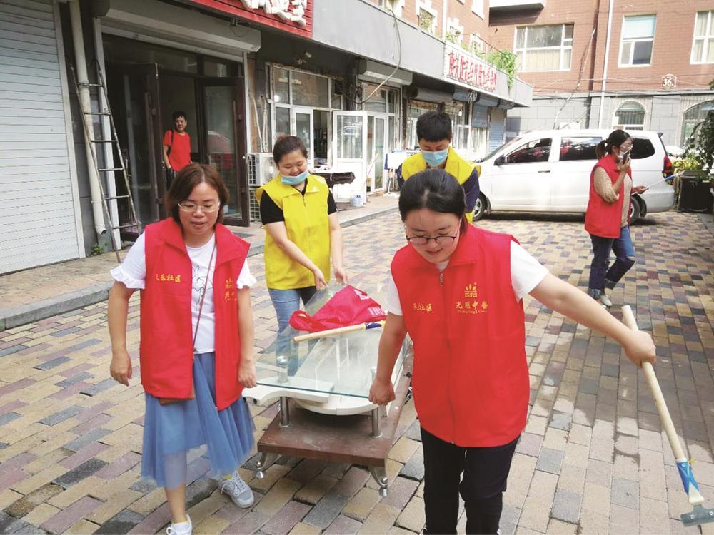 南關(guān)區(qū)天樂(lè)社區(qū)組織志愿者對(duì)老舊散小區(qū)環(huán)境衛(wèi)生進(jìn)行清理。(資料圖片)