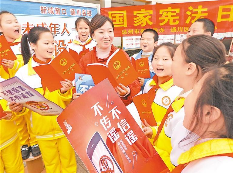 12月3日,在四川省達(dá)州市通川區(qū)羅江鎮(zhèn)魏興實(shí)驗(yàn)學(xué)校,普法志愿者給學(xué)生講解憲法知識。今年12月4日是第十一個國家憲法日,各地開展形式多樣的活動普及憲法知識,宣傳法治觀念。2024年“憲法宣傳周”活動主題為“大力弘揚(yáng)憲法精神,推動進(jìn)一步全面深化改革”,時間為12月1日至7日。新華社發(fā)