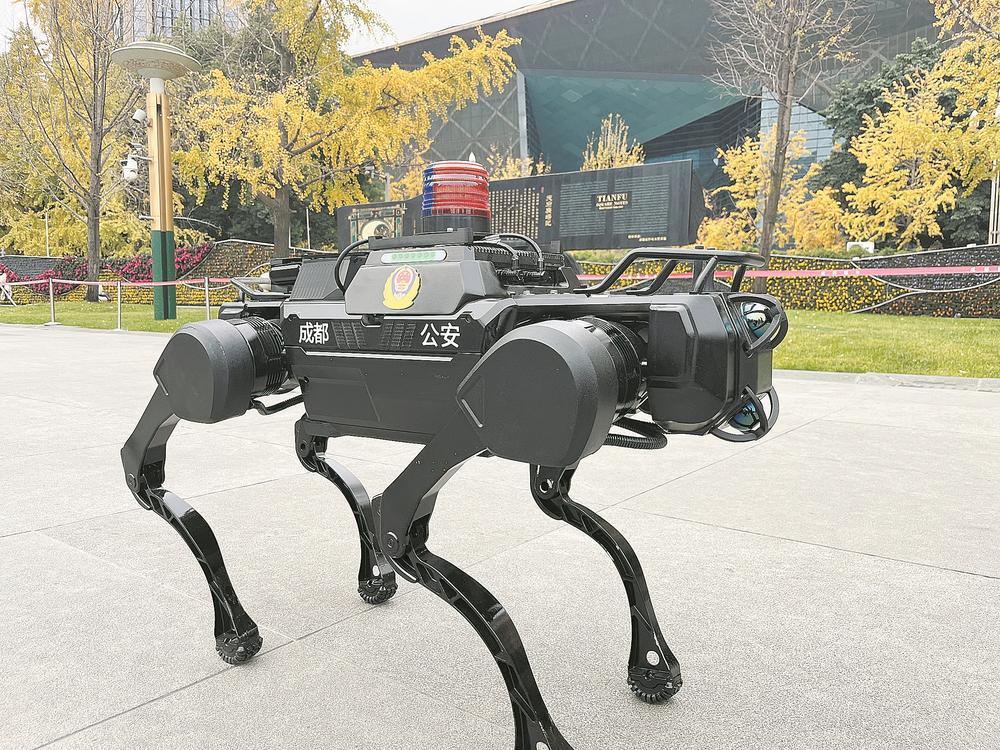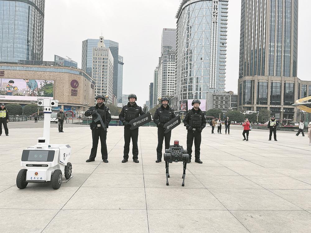 機(jī)器狗、智能巡防機(jī)器人參與天府廣場的治安巡邏