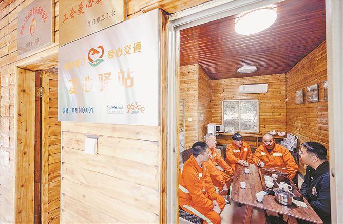 “交通一家親”愛心驛站為養(yǎng)路工人帶來便利,工作之余可在這里泡茶、讀報(bào)、聊天。(資料圖/記者 林銘鴻 攝)