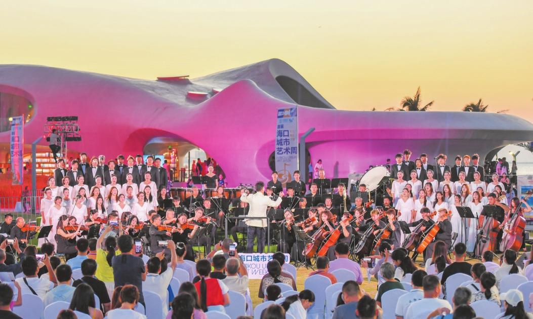 文化藝術如何飛入尋常百姓家?首屆??诔鞘兴囆g周期間,八方來客如約而至,??谟靡粓鰣鼍始姵实奈幕⒀缈畲e客。聽一場交響樂,看一次書畫展,逛一回民族服飾展……高雅藝術走出大廳,走近群眾身邊,點亮市民生活,街頭巷尾成為了海口城市文化“會客廳”,展現(xiàn)椰城獨特的城市風情和文化底蘊。