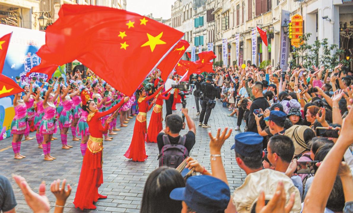 10月4日,“海島情”歡樂大巡游在海口騎樓老街上演。 記者 康登淋 攝
