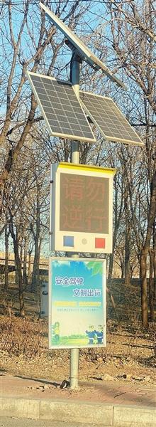 “因?yàn)榫τ邢蓿窬豢赡?4小時蹲守在主要路口,對交通參與者進(jìn)行安全駕駛宣傳,所以我們就研究、借鑒外地的先進(jìn)經(jīng)驗(yàn),設(shè)置了這樣的交通安全電子牌。它的好處是能夠長期、潛移默化地影響交通參與者,比一兩次宣傳的效果要好?!笔泄簿直背椒志纸痪刃蚬芾泶箨?duì)負(fù)責(zé)人告訴記者。為了節(jié)能減排,他們選擇太陽能為電子牌供電,這些電子牌是找專門廠家定制的,可以提前預(yù)錄提示文字和提示音。