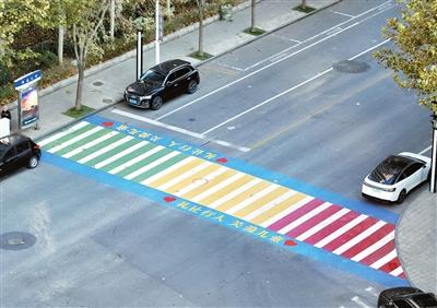 兒童對色彩比較敏感,喜歡五顏六色的世界。在和平區(qū)南市大街附近,幾個路口的斑馬線不再是單調(diào)的白色,而是五顏六色。這些斑馬線的設(shè)置專為吸引兒童的注意,讓他們養(yǎng)成“行人過馬路必須走斑馬線”的好習(xí)慣。
