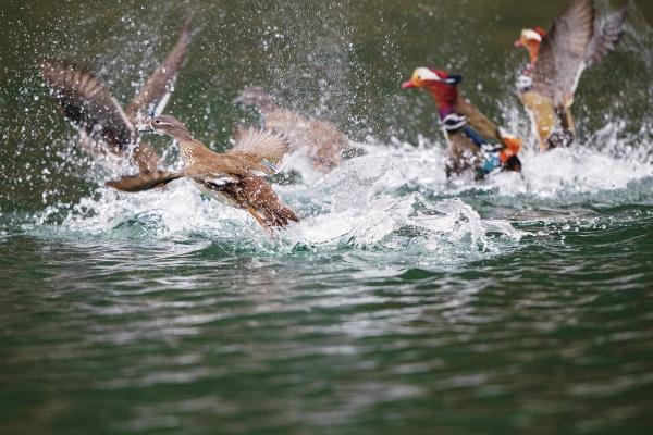 2月9日,桃源縣王家灣水庫,鴛鴦戲水,水花四濺。鴛鴦在湖南是冬候鳥,棲息于山地的河谷、溪流,屬國家二級保護(hù)動物。