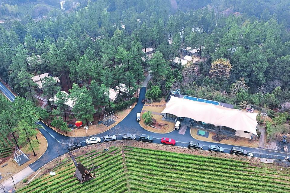 3月15日拍攝的浙江省湖州市安吉縣九畝松風露營地(無人機照片)。