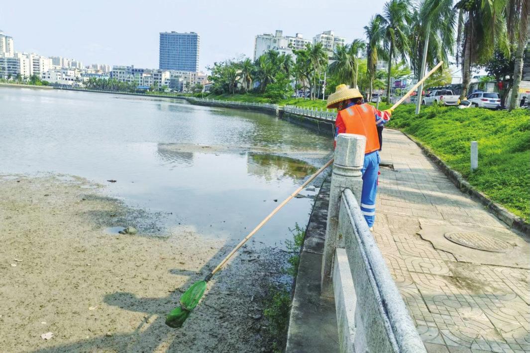 ??诰┉h(huán)公司加強(qiáng)水域保潔。張婷 攝