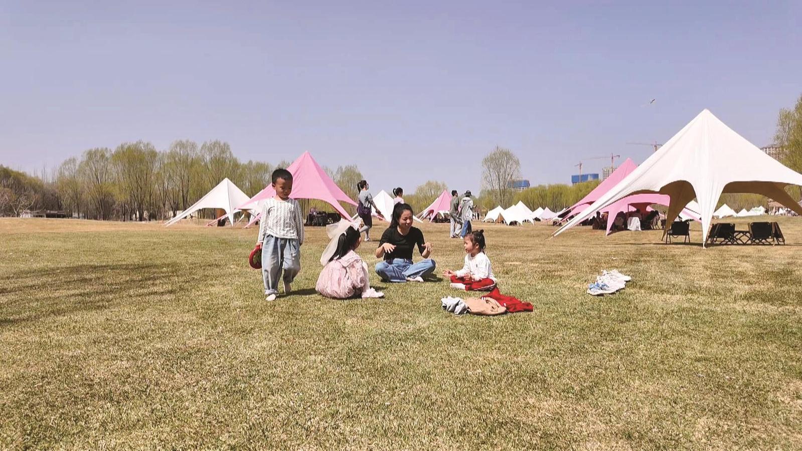 戶外露營,享受親子時光(4月6日攝)。 記者 張韶奇 王浩南 攝