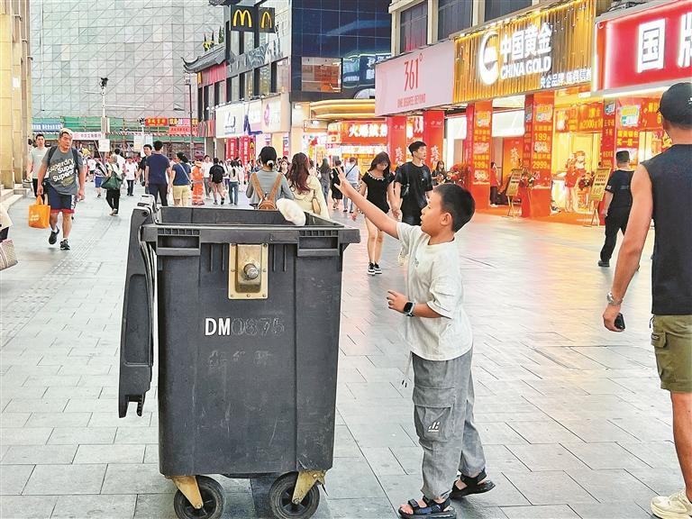 如此龐大的客流量,卻沒有讓街區(qū)變得雜亂無章,街道依舊干凈整潔。這離不開環(huán)衛(wèi)工人的辛勤付出,王阿姨便是其中的代表。假期五天,她持續(xù)作業(yè),不僅要處理日益增多的垃圾和紙箱等廢棄物,還被調(diào)派至人流密集區(qū)域加強保潔力度?!白蠲Φ臅r候是下午4點到6點,我們得保證垃圾不落地?!蓖醢⒁踢吳謇韽U棄飲料瓶邊告訴記者。