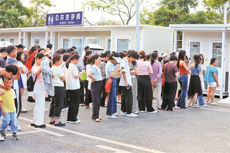 深圳灣公園內(nèi),游客在公共廁所前有序排隊等候。記者 陳玉 攝