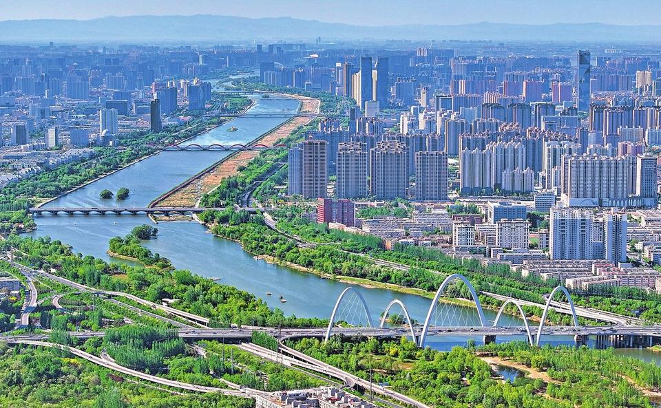 5月9日,太原市汾河公園,造型獨(dú)特的橋梁與波光粼粼的汾河相互映襯,一幅優(yōu)美的城市生態(tài)畫卷徐徐展開。記者 劉通 攝