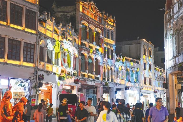 近年來,??诔掷m(xù)推進(jìn)騎樓老街更新改造,通過燈光亮化、業(yè)態(tài)升級(jí)及文旅活動(dòng),讓老街持續(xù)煥發(fā)新活力。記者 李天平 攝