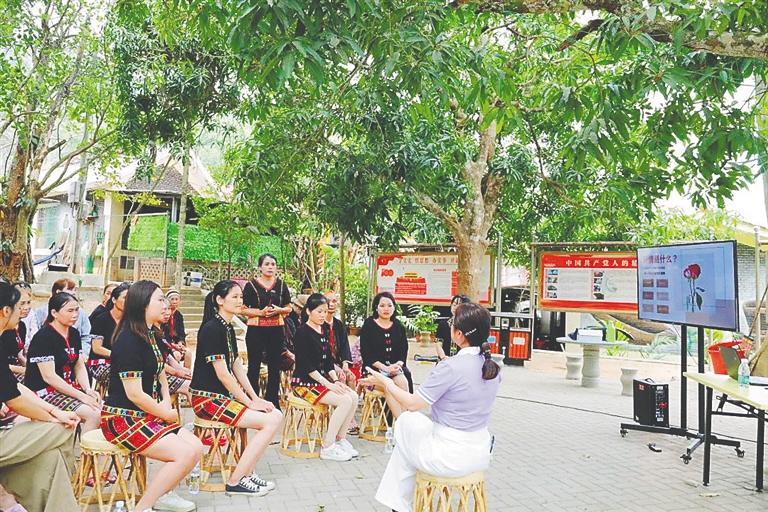 “黎花知音”課堂走進昌江王下鄉(xiāng),學(xué)員在大樹下聽講。受訪者供圖