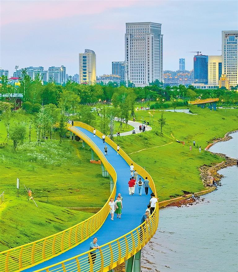 6月14日,江西省南昌市紅谷灘區(qū)贛江市民公園,漫游長廊、休閑步道、兒童樂園等功能型、游樂類設(shè)施成為市民健身鍛煉的好去處。近年來,當?shù)胤e極建設(shè)城市綠色通道和生態(tài)景觀長廊,并通過水系治理、岸線整治、濕地修復(fù)、增添設(shè)施等措施,打造風景秀麗、功能多樣的主題公園,讓群眾樂享“15分鐘健身圈”。朱海鵬攝(中經(jīng)視覺)