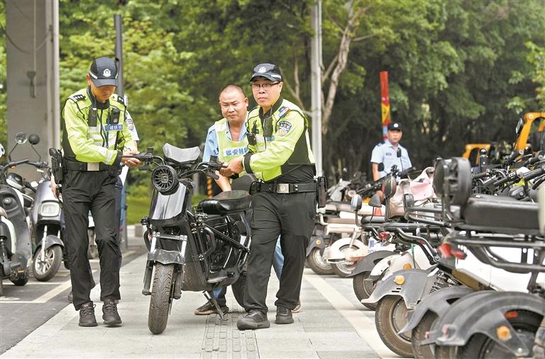 廣州有關(guān)部門對違規(guī)電動自行車予以查處。記者 邱偉榮攝