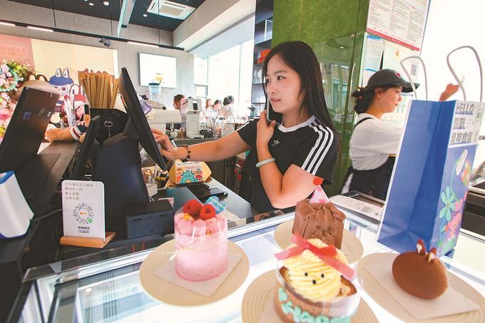 6月10日,徐州文廟歷史文化街區(qū)的怪獸智造蛋糕甜品店,主理人王玉一邊接訂單電話一邊給線下客戶結(jié)賬。這家緊跟時尚潮流的甜品店,頗受年輕人的喜愛。蒯創(chuàng) 攝(視覺江蘇網(wǎng)供圖)