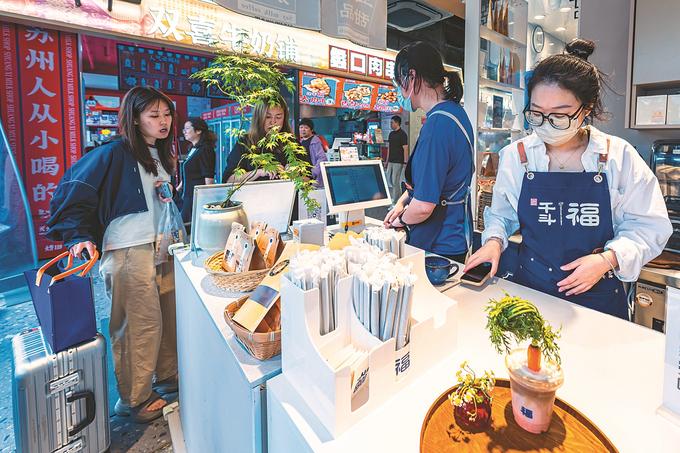 6月8日,蘇州姑蘇區(qū)十全街,95后陳澄開的嘿啰面包店,門庭若市??恐姘焚|(zhì)和十全街人流量,小店開業(yè)兩年,生意持續(xù)紅火。闕明芬 攝 (視覺江蘇網(wǎng)供圖)