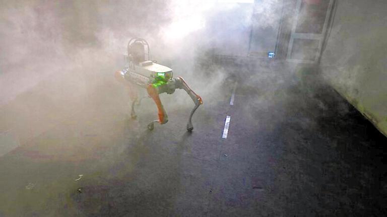 四足機器人在煙霧中開展搜救,將現(xiàn)場情況實時向指揮部進行圖傳。深圳市消防救援支隊供圖