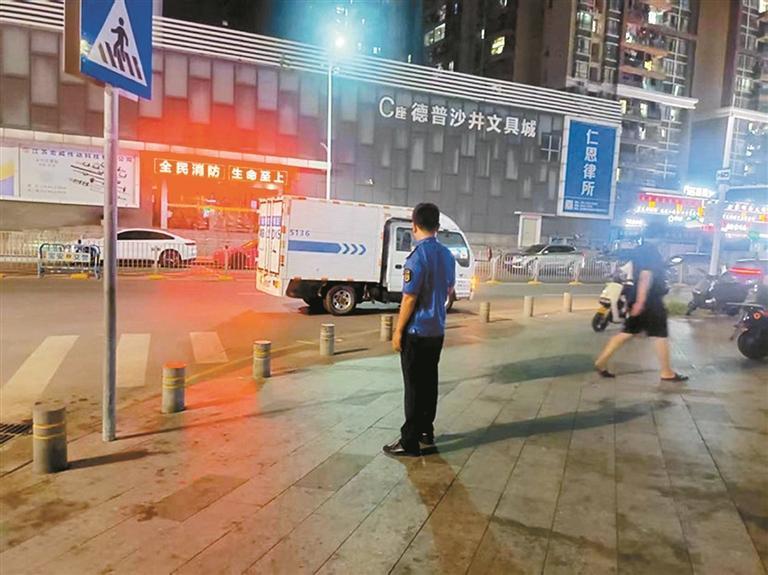 與此同時,各街道統(tǒng)籌梳理所屬部門、社區(qū)巡查整治隊員,形成巡查隊伍,聯(lián)動環(huán)衛(wèi)力量,對路面水馬、橫幅廣告(燈箱廣告、遮陽傘)、“三亂”小廣告、垃圾桶臟污滿溢、亂堆放、散置垃圾、非機動車違停、零星流動攤販、亂掛曬、綠化垃圾等十項影響市容市貌、可快速處置的問題,以“現(xiàn)場巡查、現(xiàn)場處置”為原則,實現(xiàn)問題快速發(fā)現(xiàn)、現(xiàn)場處置。