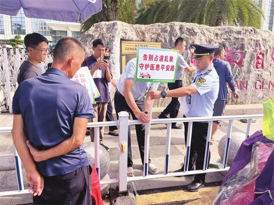 為防止問(wèn)題反彈,秀英分局打出“組合拳”,協(xié)調(diào)院方增設(shè)物理隔離欄,優(yōu)化人車(chē)分流通道,并安排人員定人定崗值守,整治工作取得明顯成效。