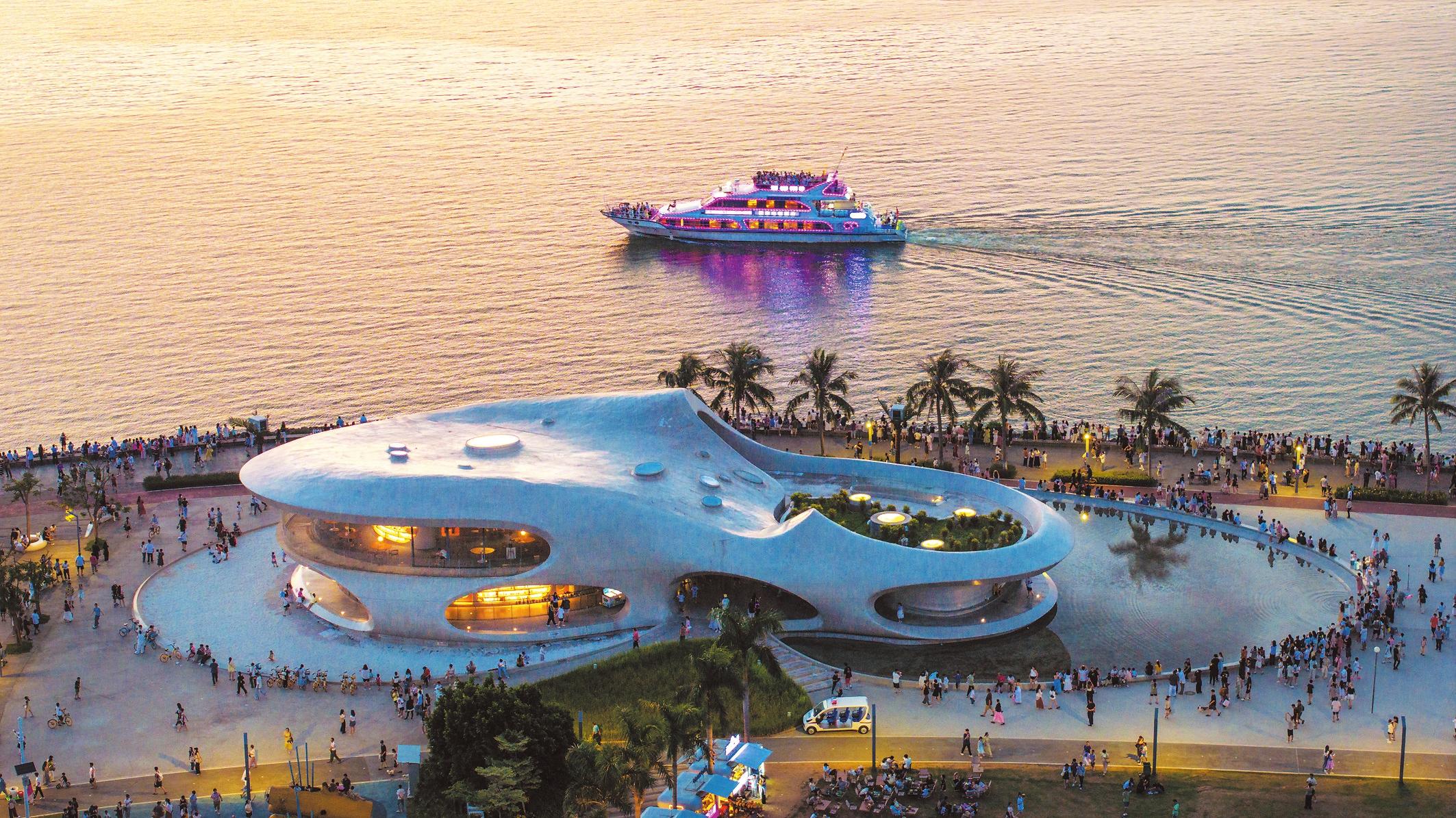 游客對這份美好的旅游體驗,源于??趯?85.06平方千米海域面積與81.63千米海岸線的精心守護。為進一步推動全省首個省級全域美麗海灣城市建設,日前,??诎l(fā)布《關于推進海洋生態(tài)環(huán)境高質量保護打造全域美麗海灣城市的實施意見》,明確到2030年,??谑薪ǔ伞八鍨﹥?、魚鷗翔集、人海和諧”的國家級全域美麗海灣。屆時,從西海岸的落日余暉到東寨港的紅樹林影,從??跒车亩际酗L情到新海灣的漁村韻味,市民游客的親海體驗將得到顯著提升。