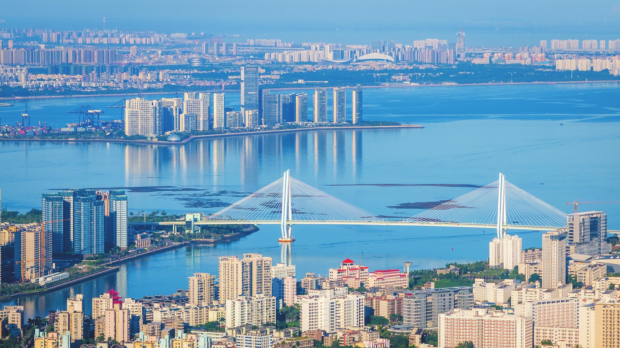 從高空俯瞰??冢鞘信c江海相融,高樓林立、跨海大橋在光影里舒展,薄霧輕籠處,新舊景致交織,椰城清晨美極了。記者 楊鶴 攝