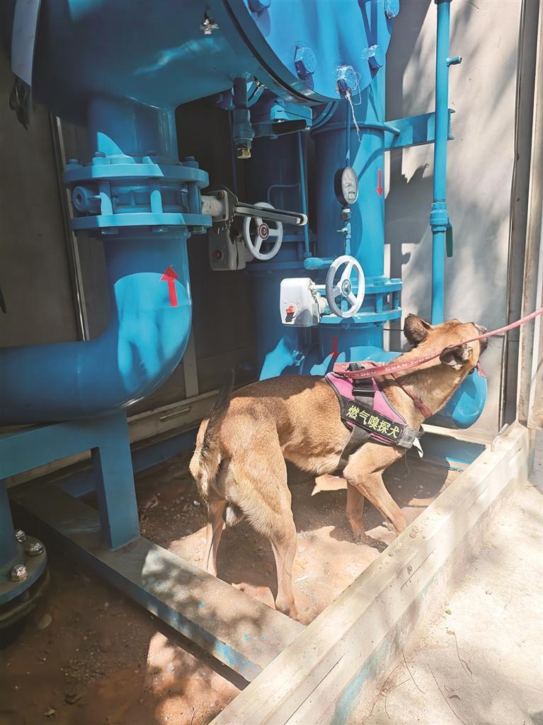 因訓(xùn)練的高度針對性,嗅探犬僅對四氫噻吩產(chǎn)生反應(yīng),可快速分辨天然氣與沼氣或其他氣體成分。在近期實戰(zhàn)中,公司借助嗅探犬對轄區(qū)內(nèi)部分商業(yè)綜合體、老舊小區(qū)等進(jìn)行試巡檢,歷時5天共完成38.26公里管線、322個閥門及66處調(diào)壓箱柜的巡查,有效檢測出隱蔽風(fēng)險點34個。在下西園試點區(qū)域,它們僅用4小時就完成了傳統(tǒng)巡檢方式需一天覆蓋的范圍,工作效率得到顯著提升。
